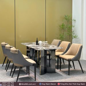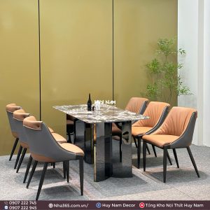 BÀN ĂN ĐÁ TINH THỂ, CHÂN ĐỐI D2, 6 GHẾ C54