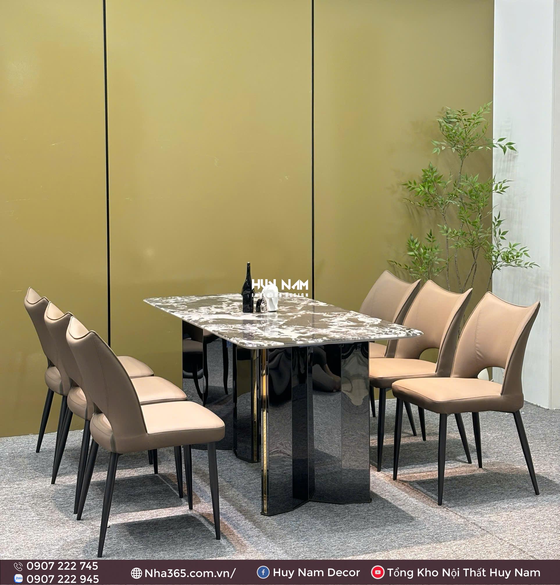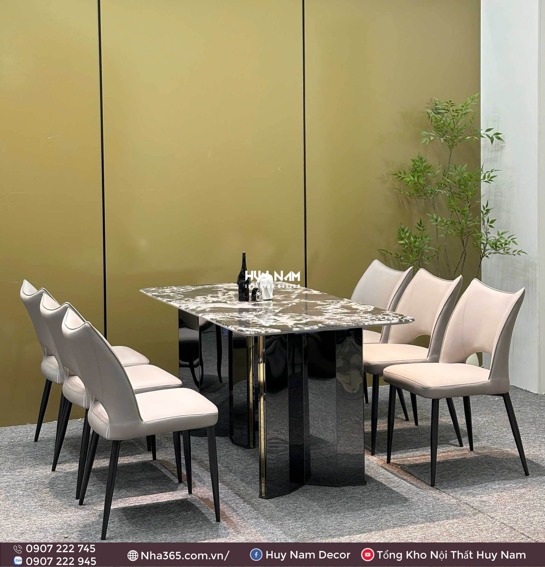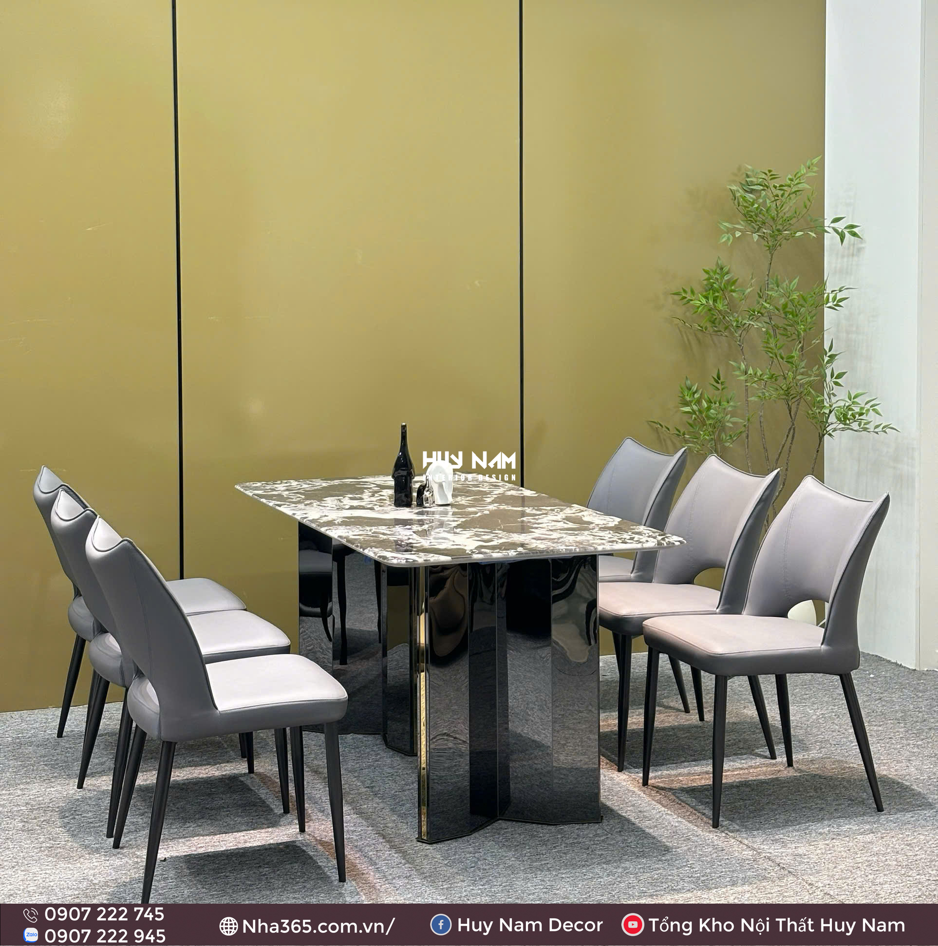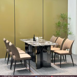 BÀN ĂN ĐÁ TINH THỂ, CHÂN ĐỐI D2, 6 GHẾ C98