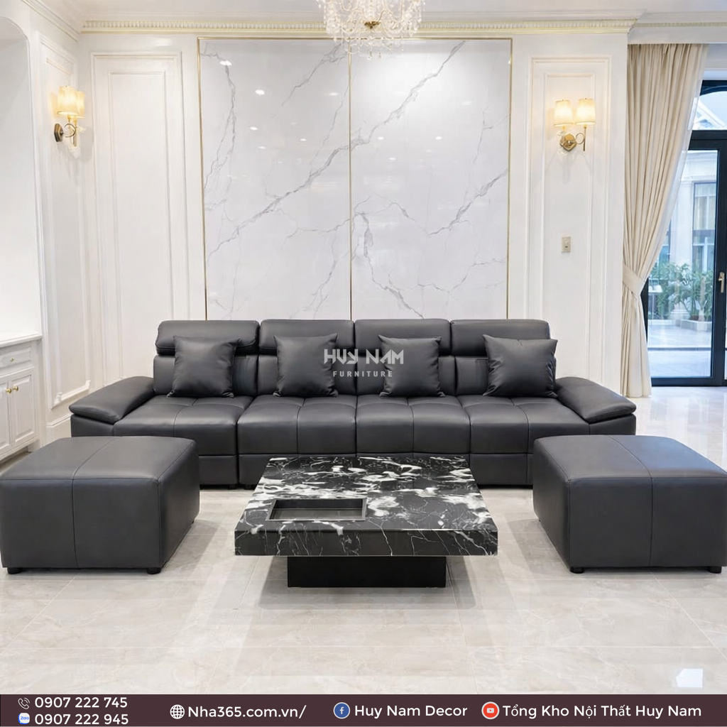 Với form dáng vuông vức mạnh mẽ, đường may tỉ mỉ cùng tone màu trung tính thời thượng, mẫu sofa này dễ dàng phối hợp với nhiều phong cách nội thất từ Modern – Minimalist – Luxury Apartment – Villa.