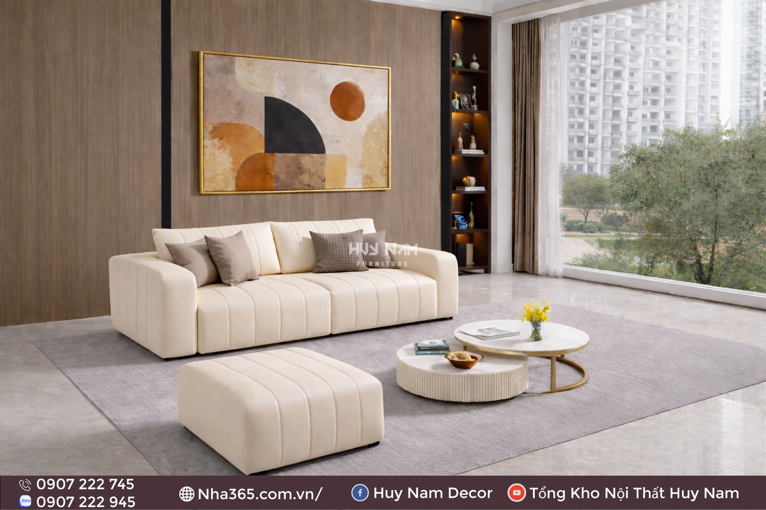Với form dáng vuông vức mạnh mẽ, đường may tỉ mỉ cùng tone màu trung tính thời thượng, mẫu sofa này dễ dàng phối hợp với nhiều phong cách nội thất từ Modern – Minimalist – Luxury Apartment – Villa.
